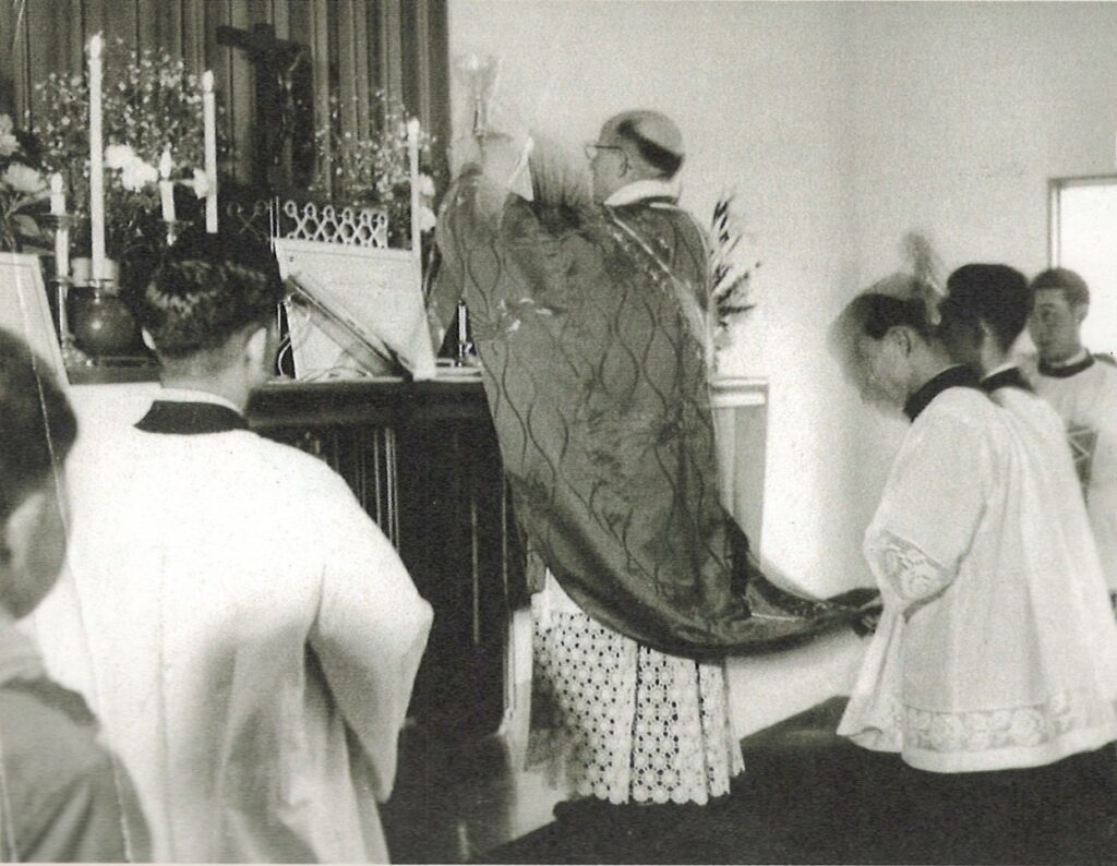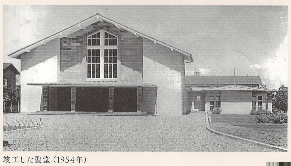 1953年、聖堂の定礎式が行われ、聖霊に捧げられました。翌年、4月に聖堂が完成し、その後、事務室、伝道館ができました。